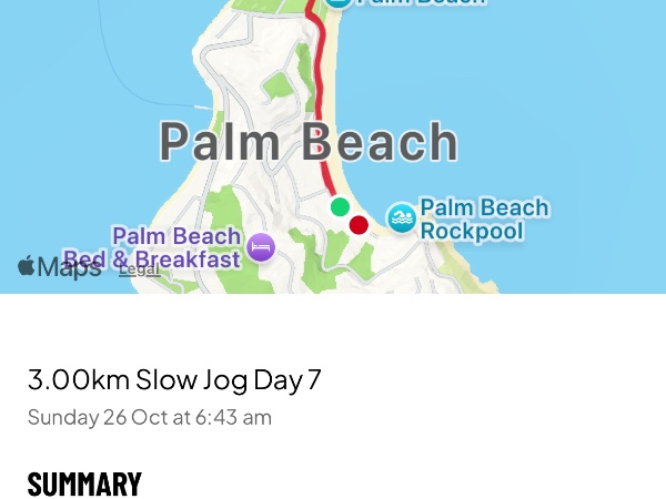 Monday 20th Oct 3km done! Rosie and I were up with the sun and ran along Palmy to enjoy the sunrise. ShareThank you to my Sponsors!