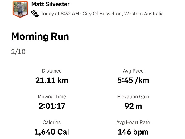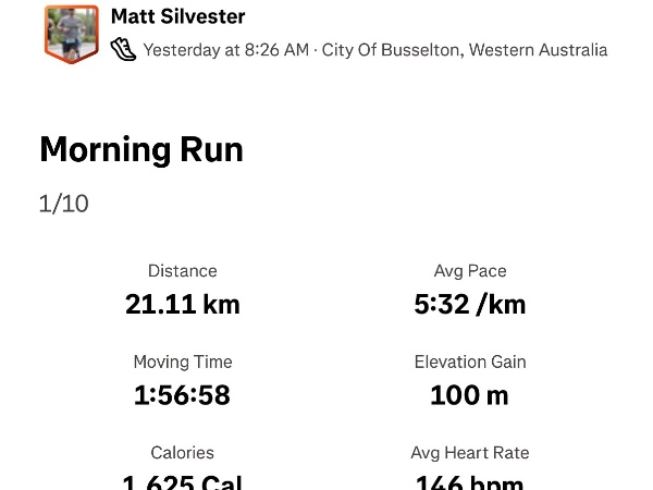 Run 21.1km every day for 10 days straight